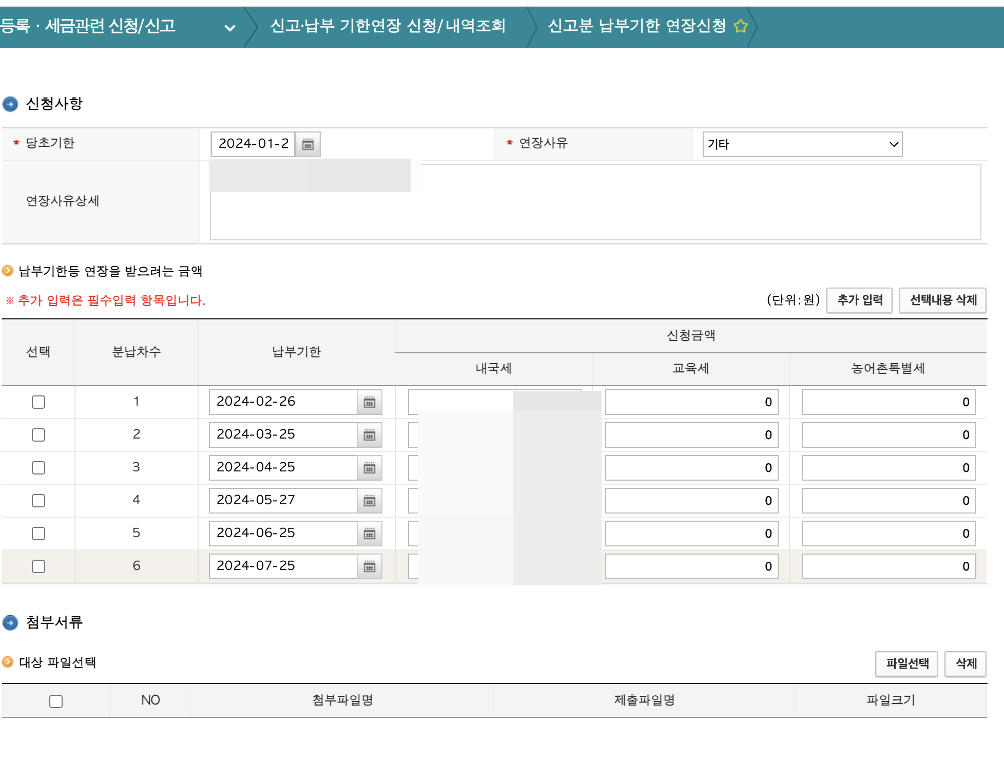 납부기한등 연장받으려는 금액을 선택하시면 되는데요.